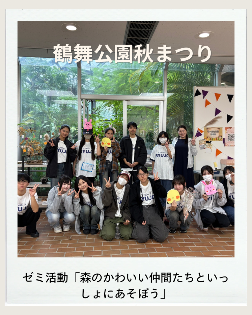 後藤ゼミでは「花育プロジェクト」として鶴舞公園の緑化センターと「秋の植物探検隊~スタンプラリーで自然遊びを楽しもう~」を企画しました。鶴舞公園にある自然を用いて葉に文字を書いたり、笹船を作り流したりと自然遊びを楽しみながらスタンプラリーをしました。